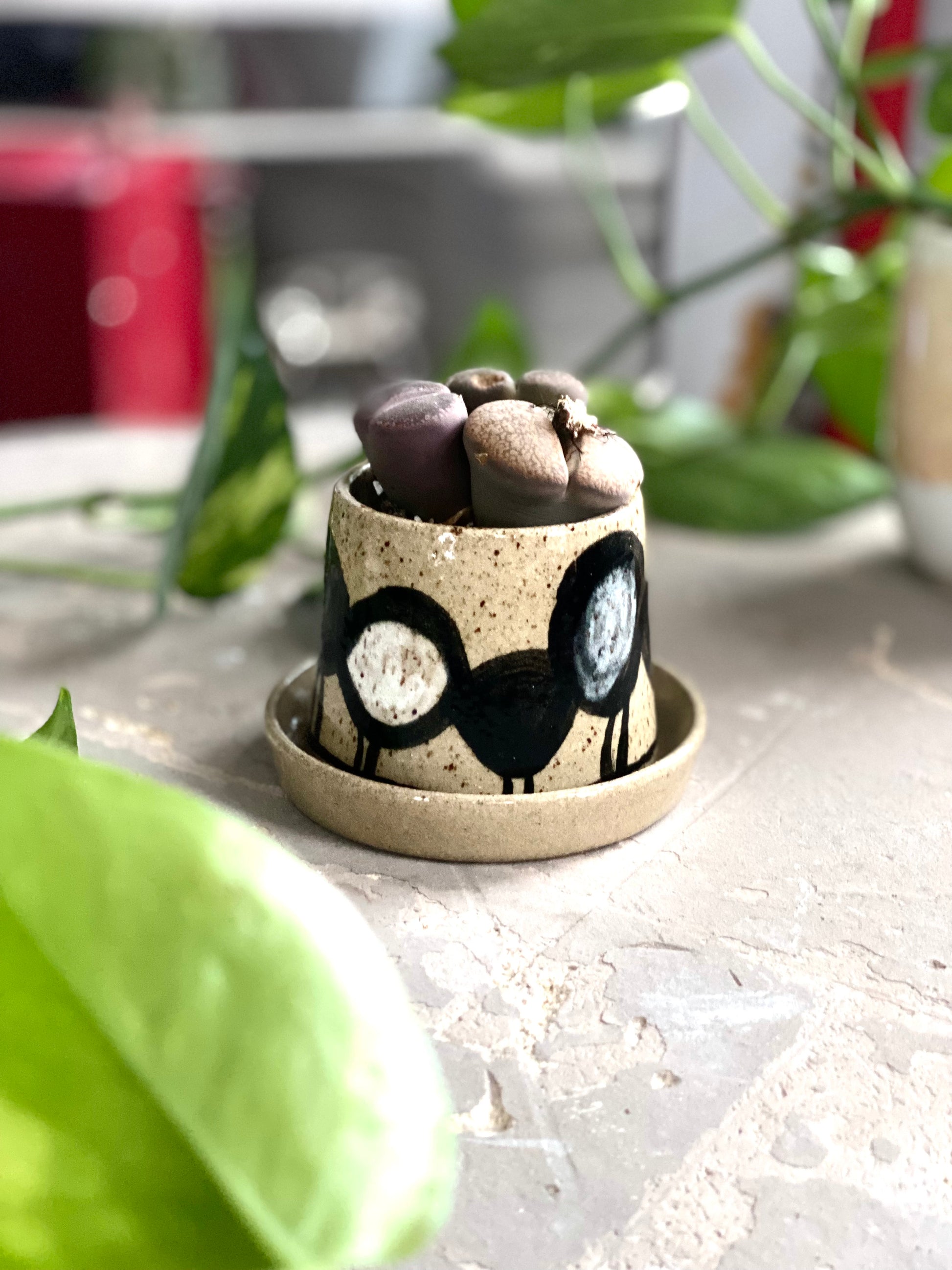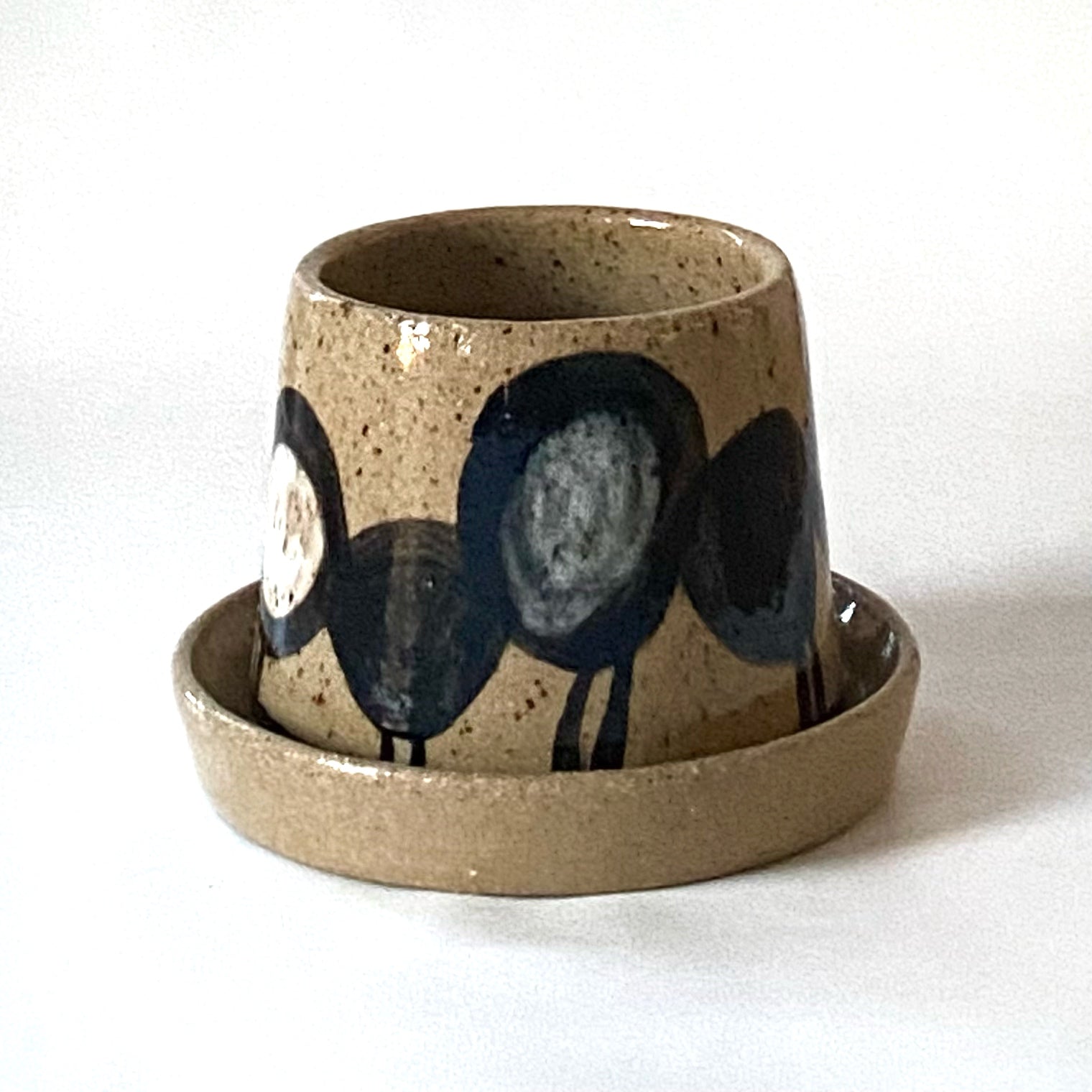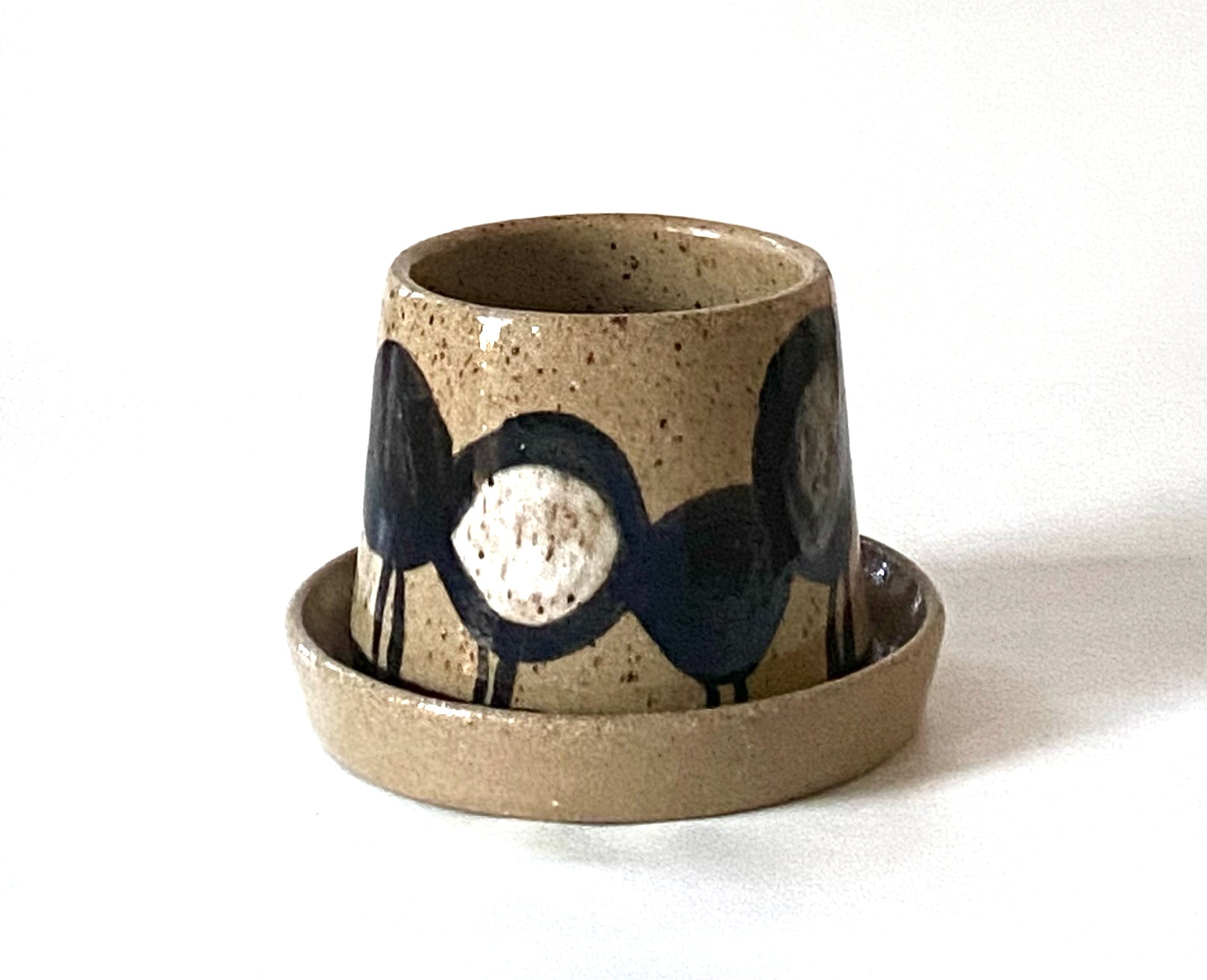 Dress up your plants in this stoneware planter, hand-painted with striking black designs and white glaze. Strong and uniquely patterned, it's an ideal pick for any plant lover.