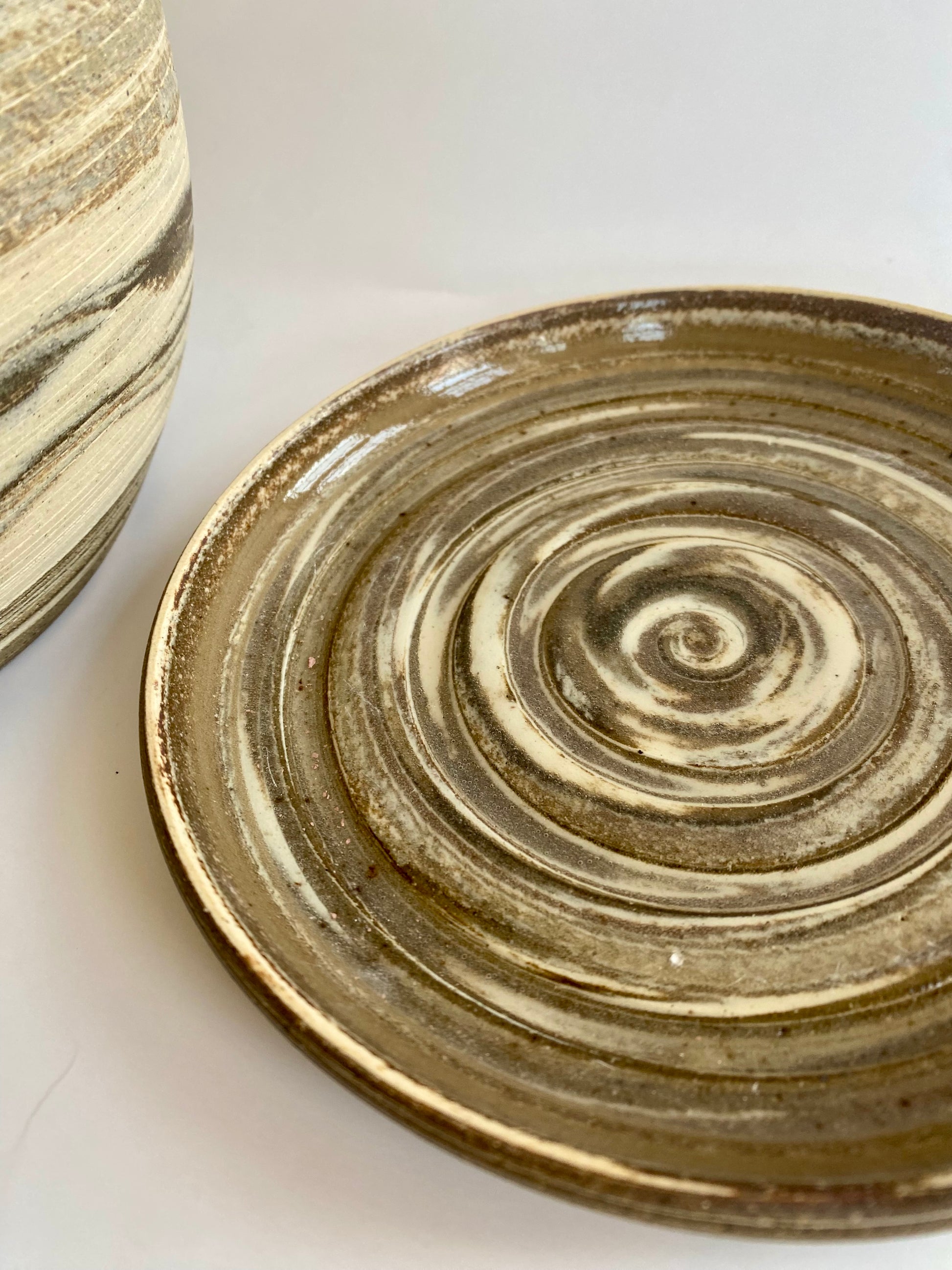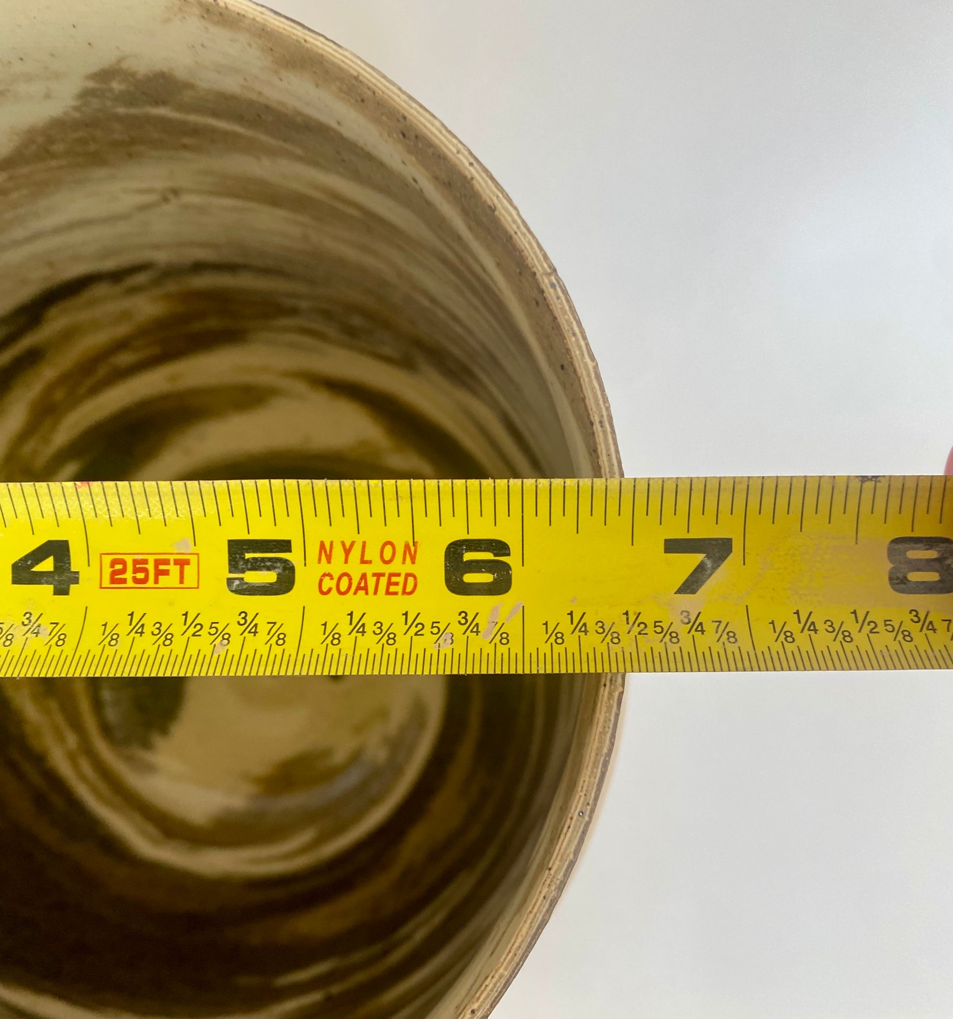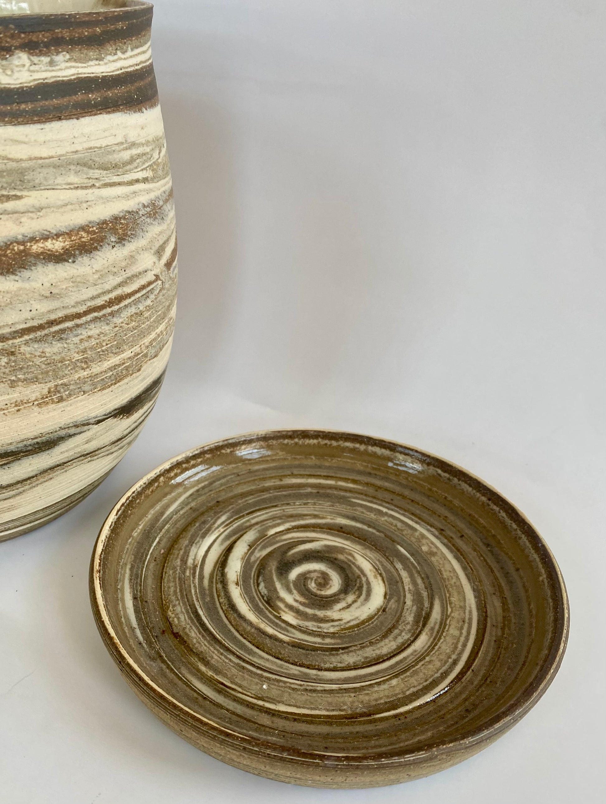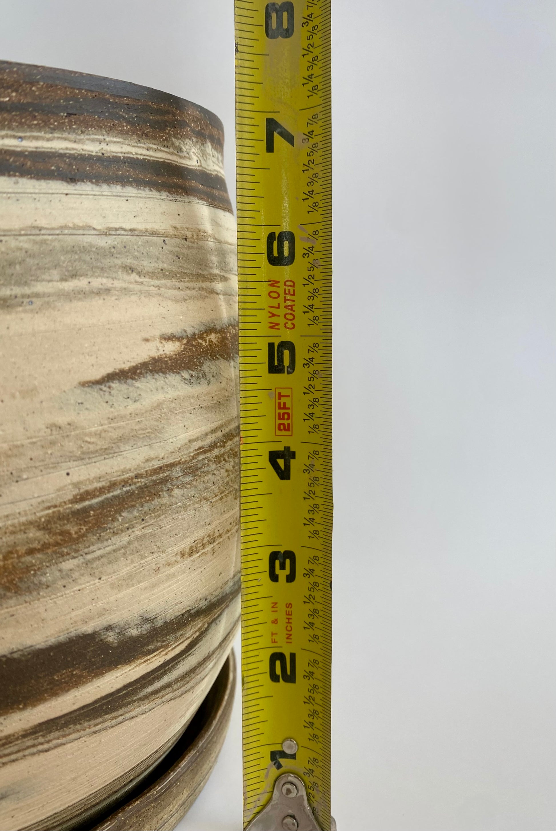 The planter was crafted using four different clay bodies, giving it a unique marbled surface with warm, natural striations. The rim carries a slight organic warp, a detail that reflects the handmade character of the piece.