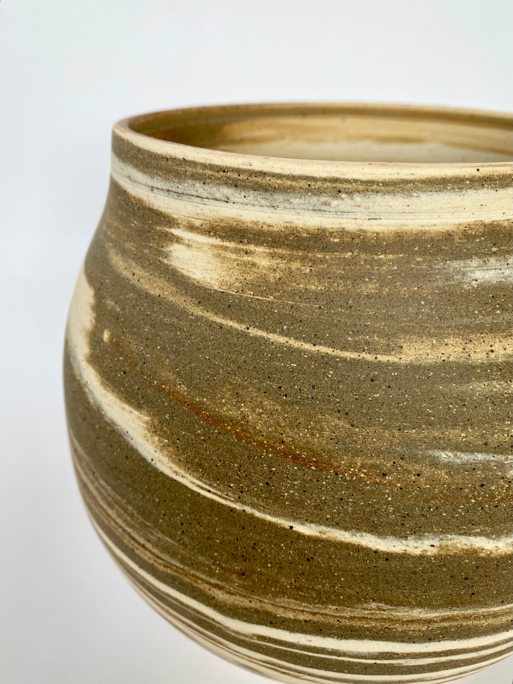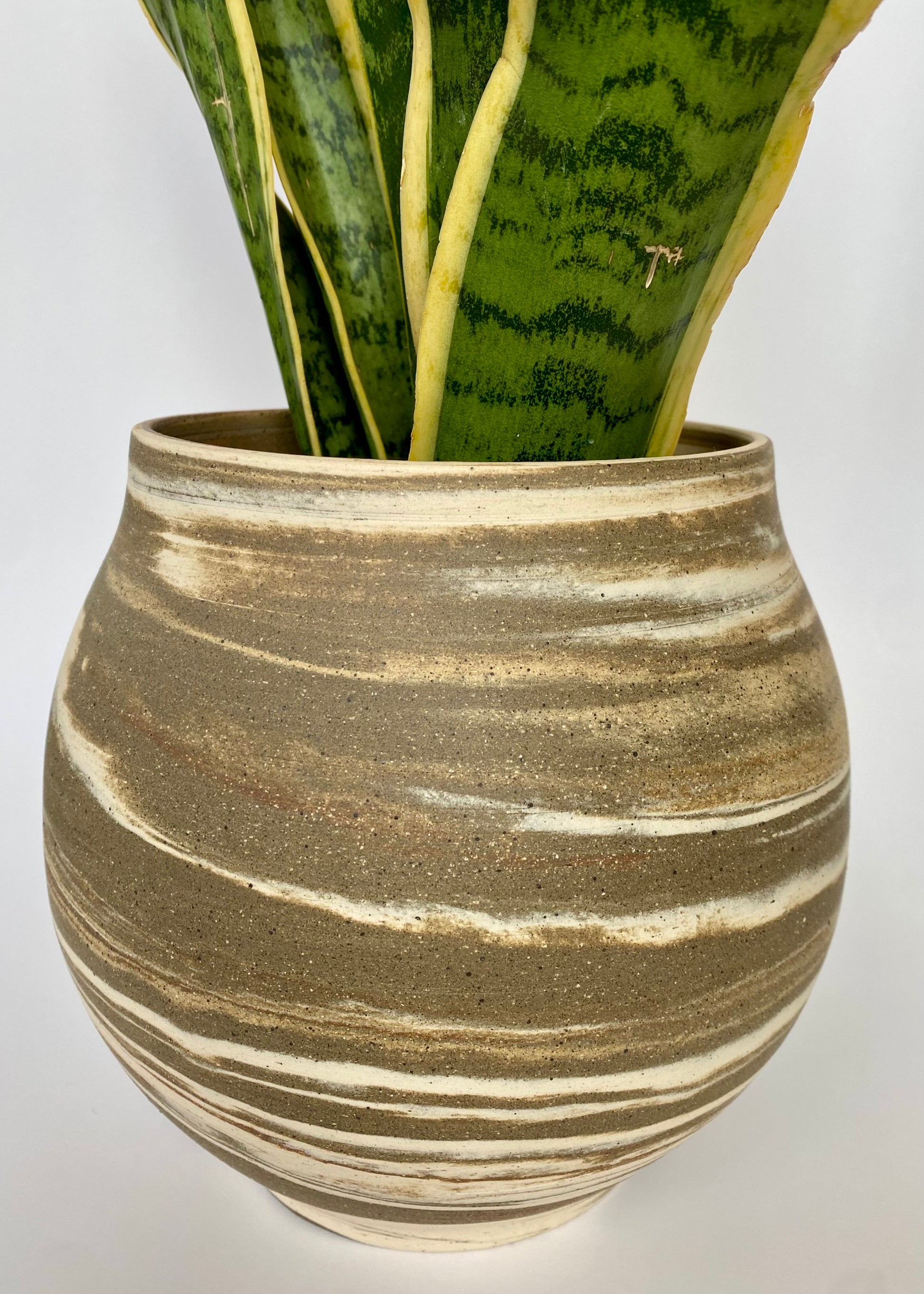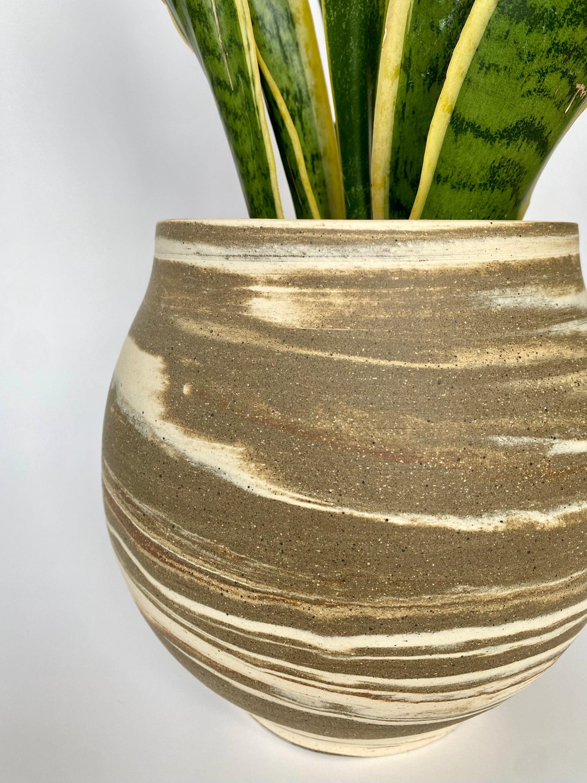 Bring a touch of earthy elegance into your space with this handcrafted marbled clay plant pot. Created using a layered technique that combines four different clay bodies, this piece showcases one-of-a-kind swirling pattern that can never be replicated. The pot is left unglazed to preserve the natural texture and raw beauty of the clay, giving it a warm, organic feel that complements any plant or decor style.